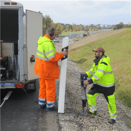 Arbetet är förlagt till den tid där det är minst trafik mängd, nämligen mellan kl. 9-15. Vår entreprenör kommer försöka vara behjälpliga med att utnyttja mötesfickor för att förenkla framkomligheten. Men etablering inför borr och montering av varje ny stolpe tar ett tag. Detta gör att man inte kommer kunna flytta på utrustningen så snabbt och lätt som man skulle kunna önska.