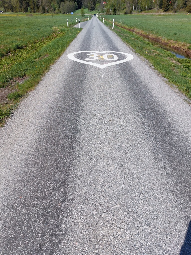 Torsdag den 16/5 VägM i Tyresö AB kommer att att måla 30 på vägen med ett hjärta för att uppmana vår rekommenderad hastighet. De kommer även att markera sträck på de nya farthindren.